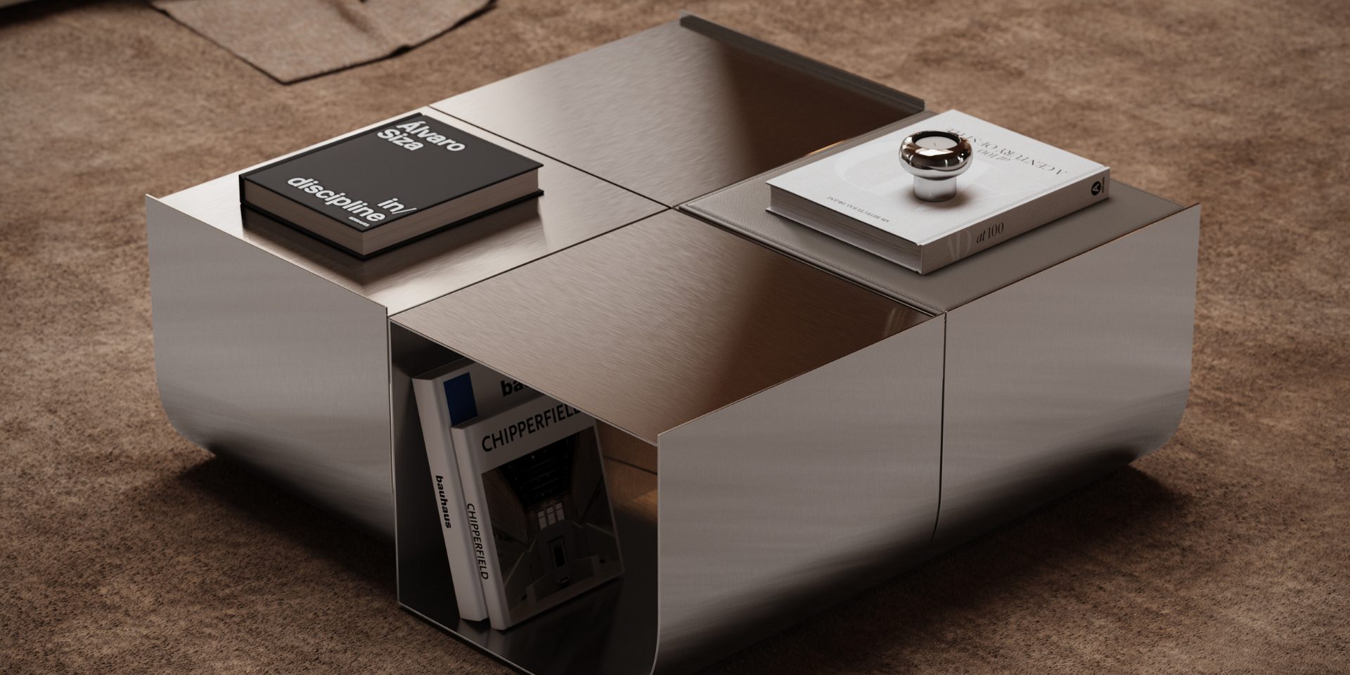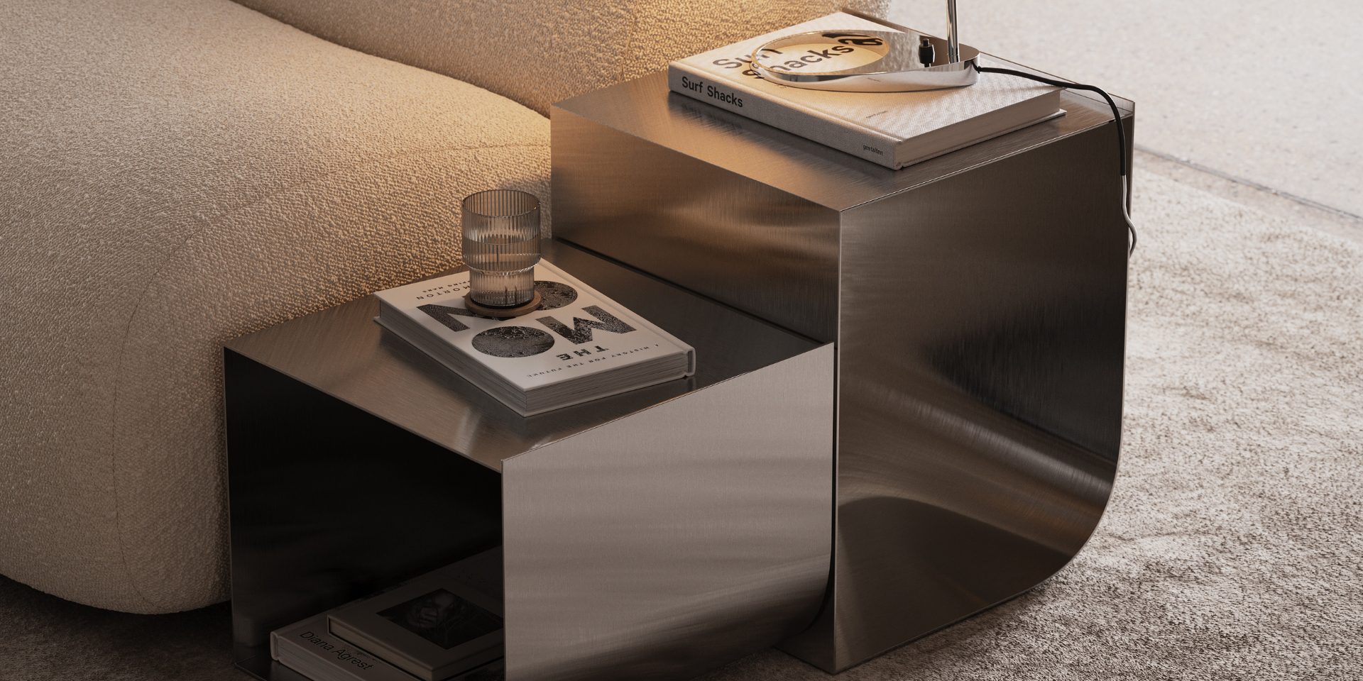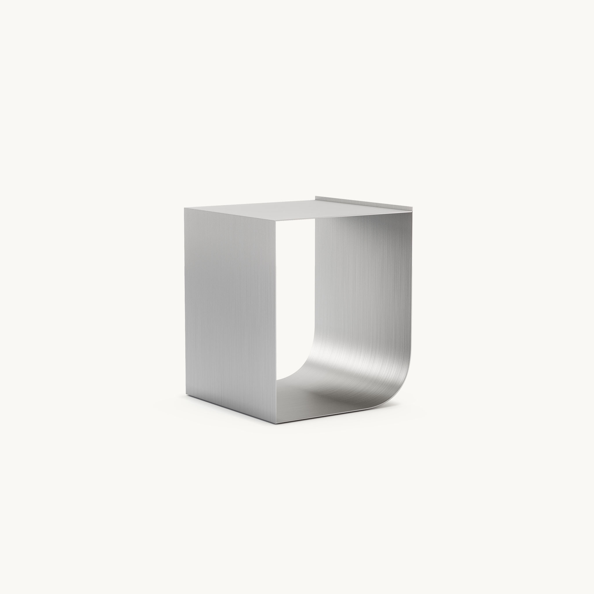 Shaped by a refined sheet metal construction, the Ren Table Set explores the contrast between pronounced curves and sharp, straight angles. This dialogue of forms gives the tables a strong architectural presence while maintaining a clean, contemporary aesthetic.