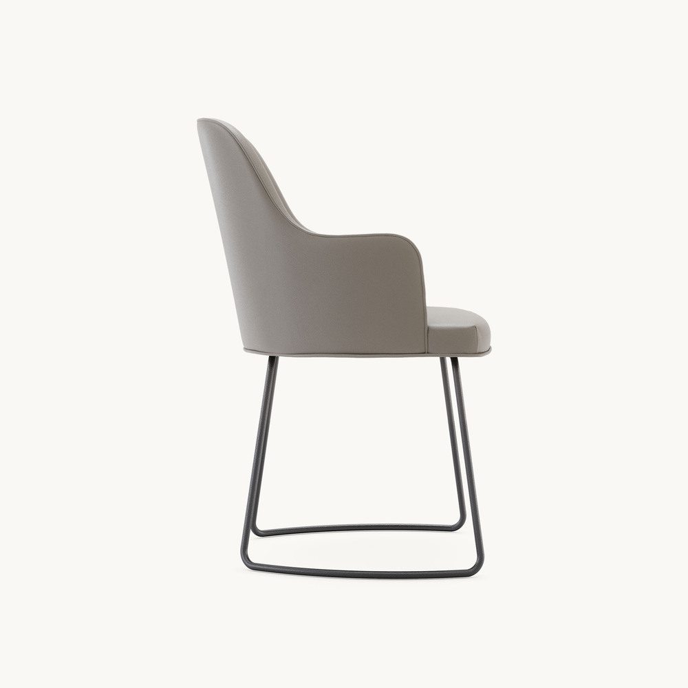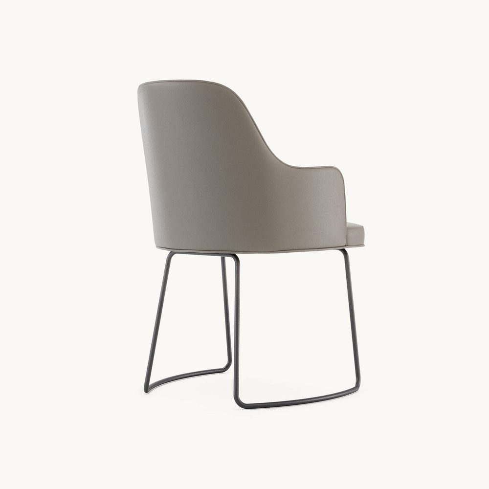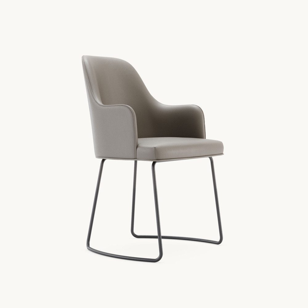 The Anna Dining Chair is a timeless design, shaped by a refined understanding of style and functionality. Available in four distinct versions, it offers two armrest options (with or without) and two base customisation choices (four legs or a sleek sled base). The base can be finished in either wood or metal, while the upholstered seat and backrest can be customised with contrasting fabrics for a unique touch.