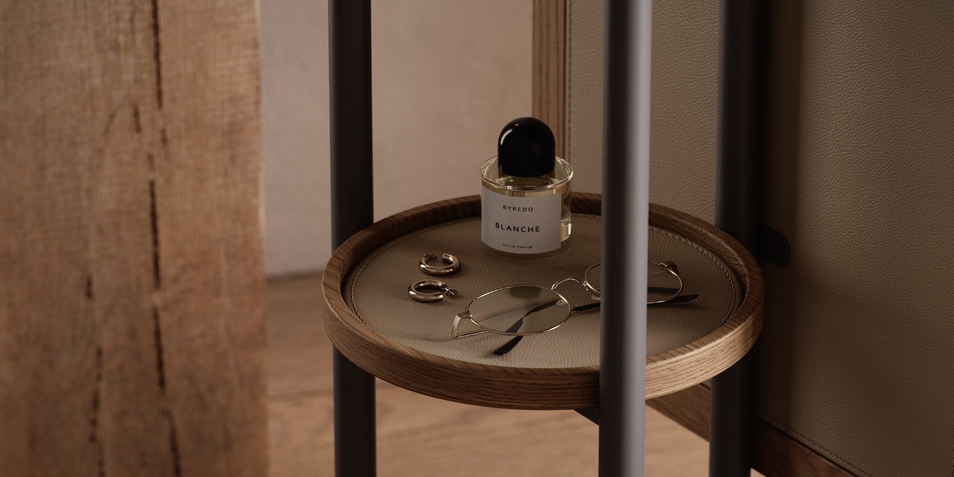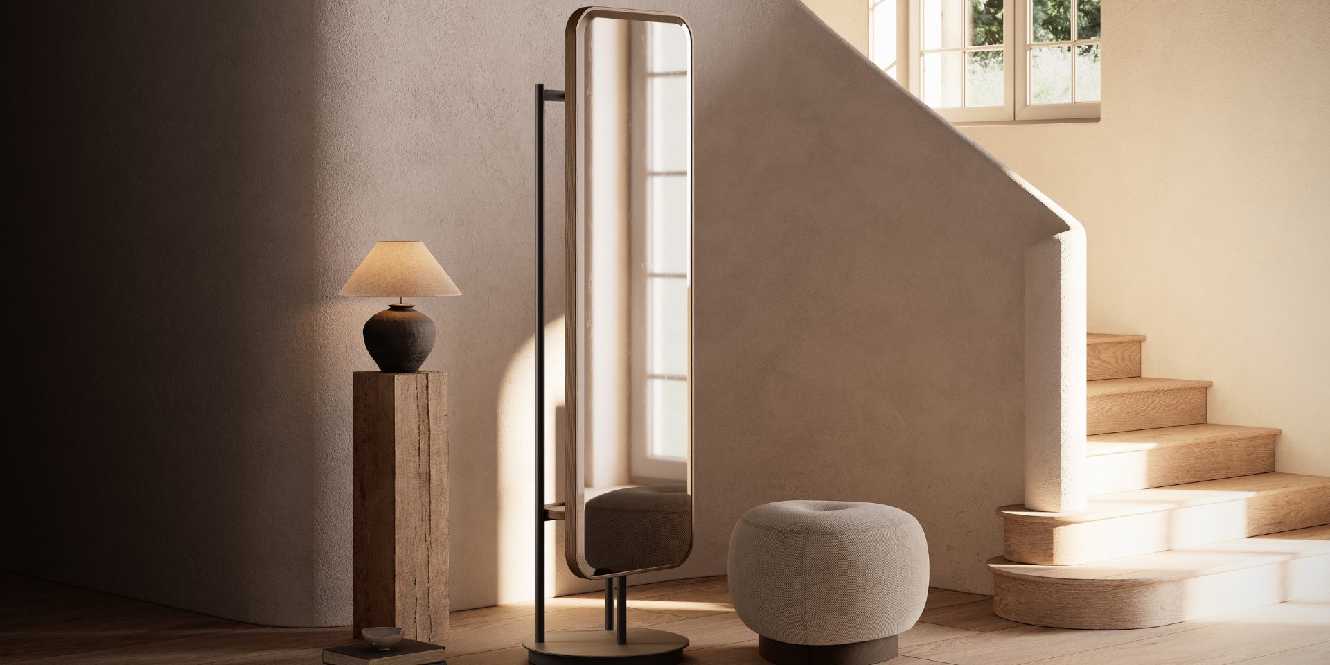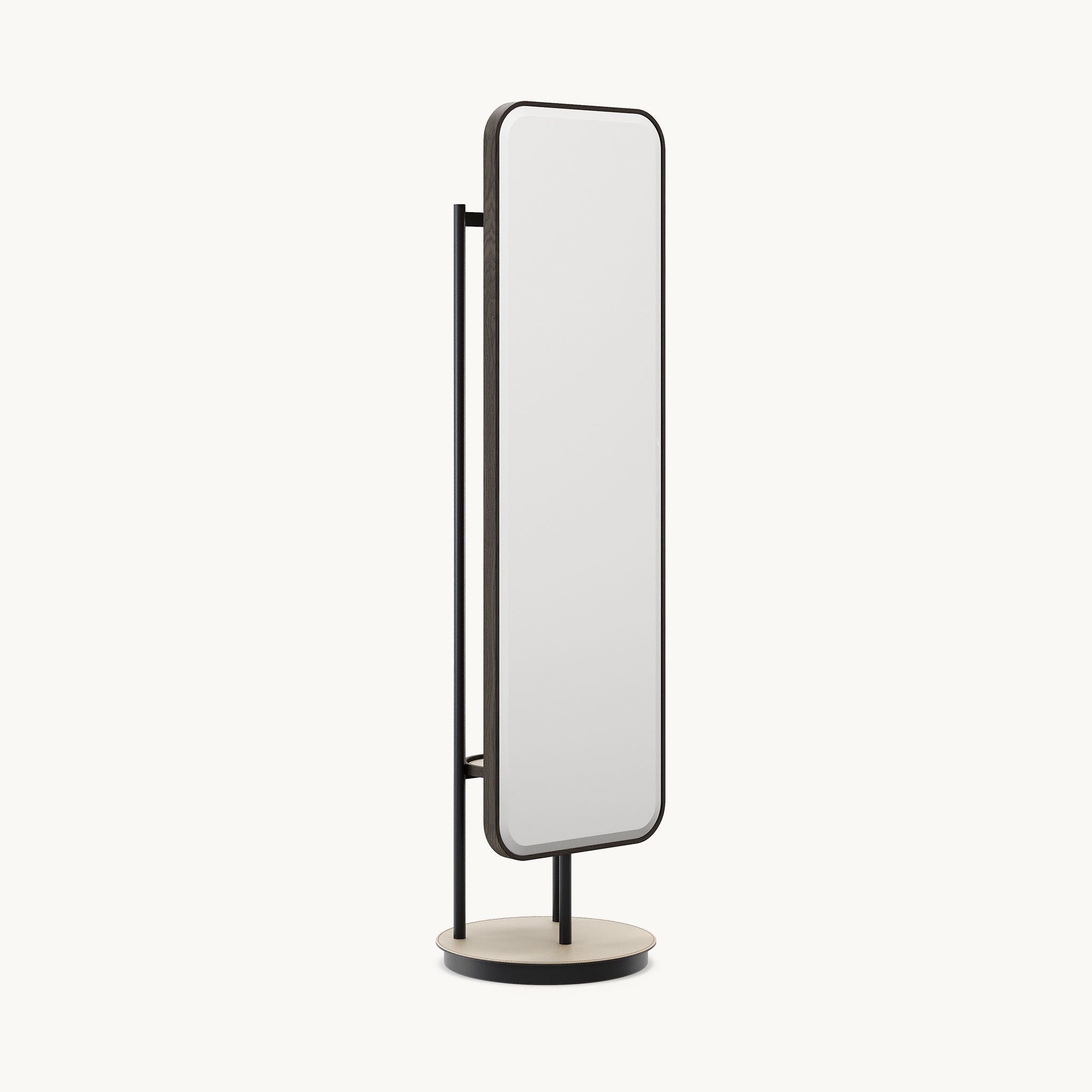 Marked by minimalist shapes and balanced volumes, the Elise Mirror features a mirror surface set within a wooden structure with a fine, subtle profile that preserves a light, elegant visual presence.